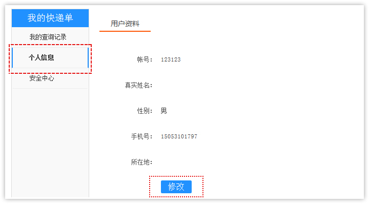 2、用戶中心點(diǎn)擊【個(gè)人信息】,進(jìn)入個(gè)人信息頁(yè)面,點(diǎn)擊【修改】,即可對(duì)個(gè)人信息進(jìn)行修改。