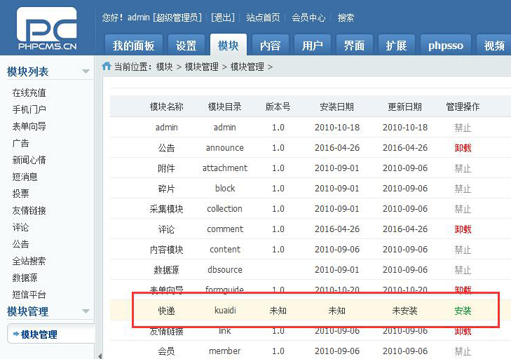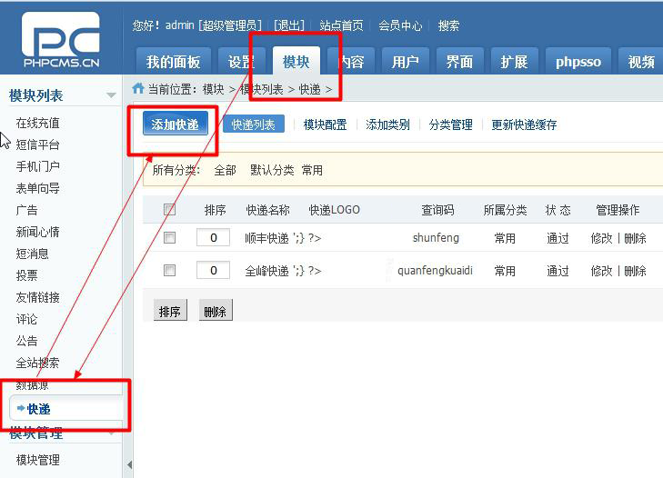 PHPcms快遞查詢插件